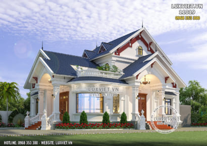 Dưới bàn tay tài hoa và con mắt sắc bén của kiến trúc sư, mẫu biệt thự lâu đài kiểu pháp là tổ hợp những tinh hoa của kiến trúc Pháp, nơi hội tụ của vẻ đẹp trời Âu đã thổi vào căn biệt thự luồng khí chất rất sang trọng và tráng lệ. Trang trí phào chỉ tinh tế và vừa đủ mang lại vẻ phóng khoáng, trẻ trung. Vẻ đẹp tổng thể không quên chi tiết được kiến trúc sư rất chú trọng, có thể thấy từng chi tiết nhỏ nhất trên ngoại thất đều được chăm chút tỉ mỉ.